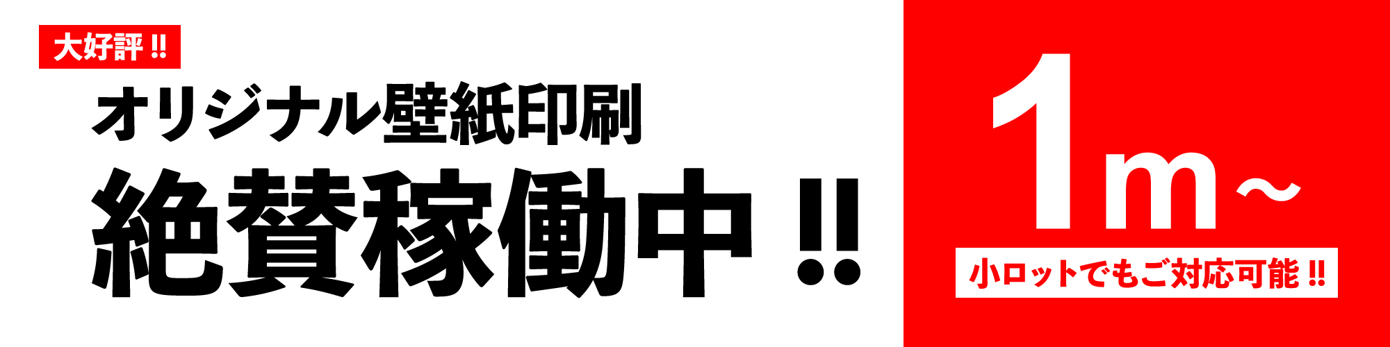巨大インクジェットプリンターであなただけのオリジナル壁紙を作成いたします。お好きな色や柄、写真やイラストなど対応可能!オリジナル壁紙=デジタルプリント壁紙1m〜の小ロットでもご対応いたします!施工も承ります。